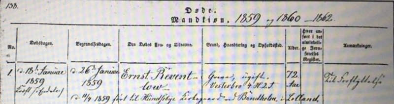 Greve Ferdinand Carl Otto Reventlow f. 20 apr. 1803, Frihedsminde, Skørringe, Fuglse Herred, Maribo Amt, Danmark |