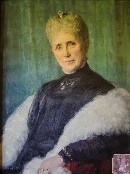 | reventlow_chr_einar_m_familie.jpg Christian Einar Ferdinand Ludvig Eduard lensgreve Reventlow sidder her på Pederstrup trappe omgivet af hustruen, Lucie-Marie, og datteren fra et tidligere ægteskab, komtesse Ermegaard samt sommergæster. Den årvågne løvinde holder det Reventlowske våben.